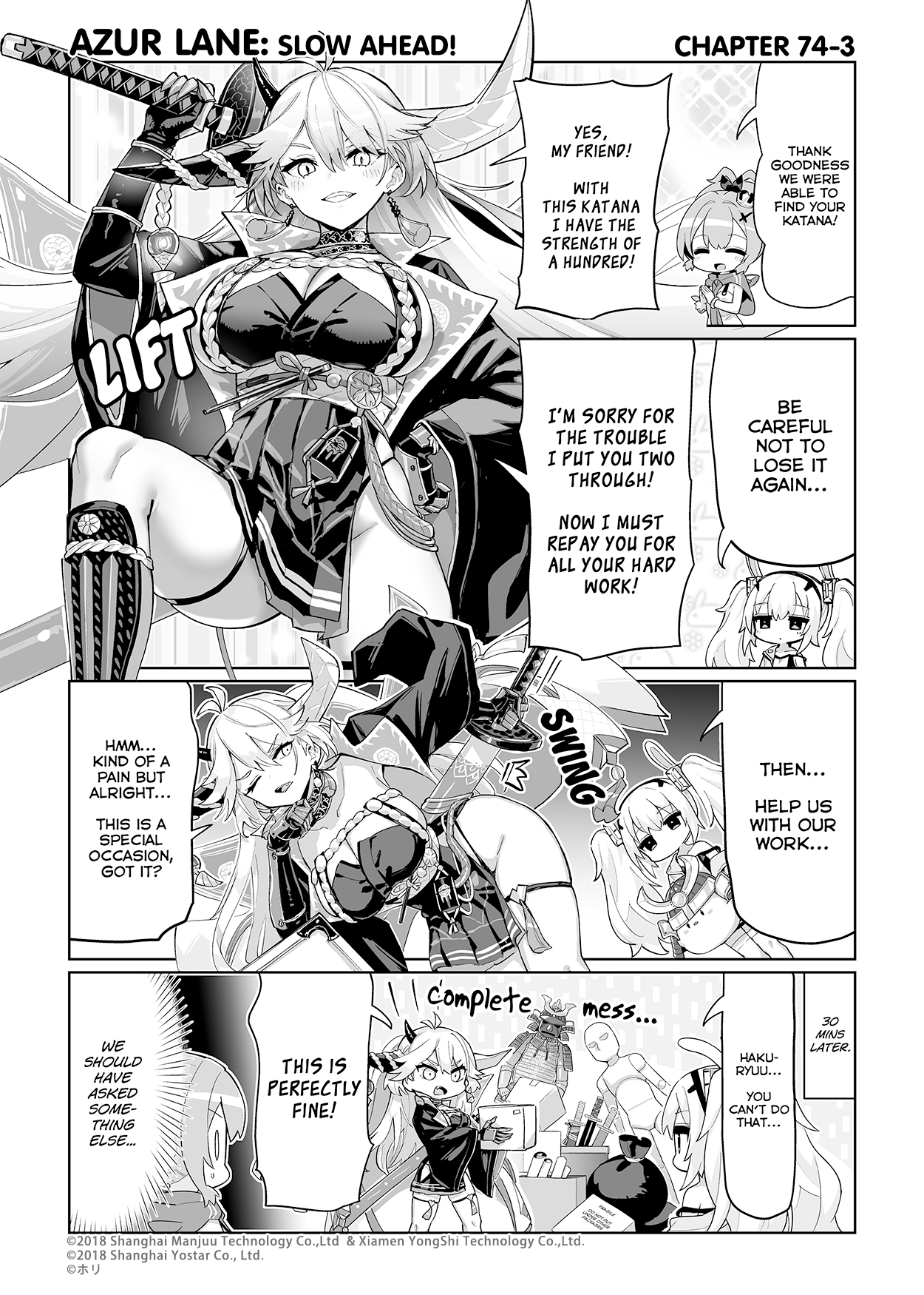 Azur Lane Official On Twitter Four Frame Manga Slow Ahead Chapter 74 Hakuryuu Lost Her Beloved Katana Did Laffey And Javelin Help Her Find It Azurlane Yostar Slowahead Https T Co Oobpck3zcn Twitter